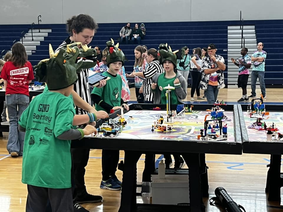 FIRST robotics is not only about working with robots. It’s also about learning how to work as a part of a team. Students grow to be confident public speakers and hone their ability to communicate deeply technical information efficiently. Teams have several opportunities to meet with judges and learn to integrate their feedback into their presentations. FLL students also have the chance to participate in numerous outreach events.